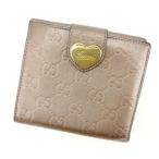 【週末タイムSALE★30%OFF】グッチ Wホック財布 二つ折り財布 レディース ハートプレート グッチシマ メタリックピンクベージュ系 中古