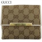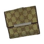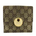 【週末タイムSALE★30%OFF】グッチ Wホック 財布 二つ折り ミニ財布 レディース メンズ GGキャンバス ベージュ ブラウン シルバー 中古