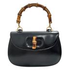 GUCCI/グッチ トップハンドルバッグ オールド ハンドバッグ レザー/バンブー ブラック レディース