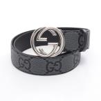 グッチ ベルト メンズ GGスプリームキャンバス インターロッキングG バックル ブラック×グレー 411924 KGDHX 8449