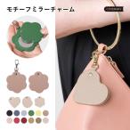 バッグチャーム 本革 鏡 ミラー ハート ニュアンス 花 フラワー キーホルダー イタリアンレザー ステンレスミラー コンパクトミラー