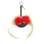 フェンディ FENDI チャーム コンパクトミラー モンスター レザー/ファー グレー/レッド