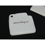 Salvatore Ferragamo フェラガモ ガンチーニ レザー ケース付き コンパクトミラー ハンドミラー 手鏡 アイボリー系 DJ0500