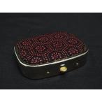 ■美品■ INDEN-YA 印傳屋 インデンヤ 鹿革 漆塗り 亀甲柄 アクセサリーケース コンパクトミラー ブラック系×レッド系 DK5304
