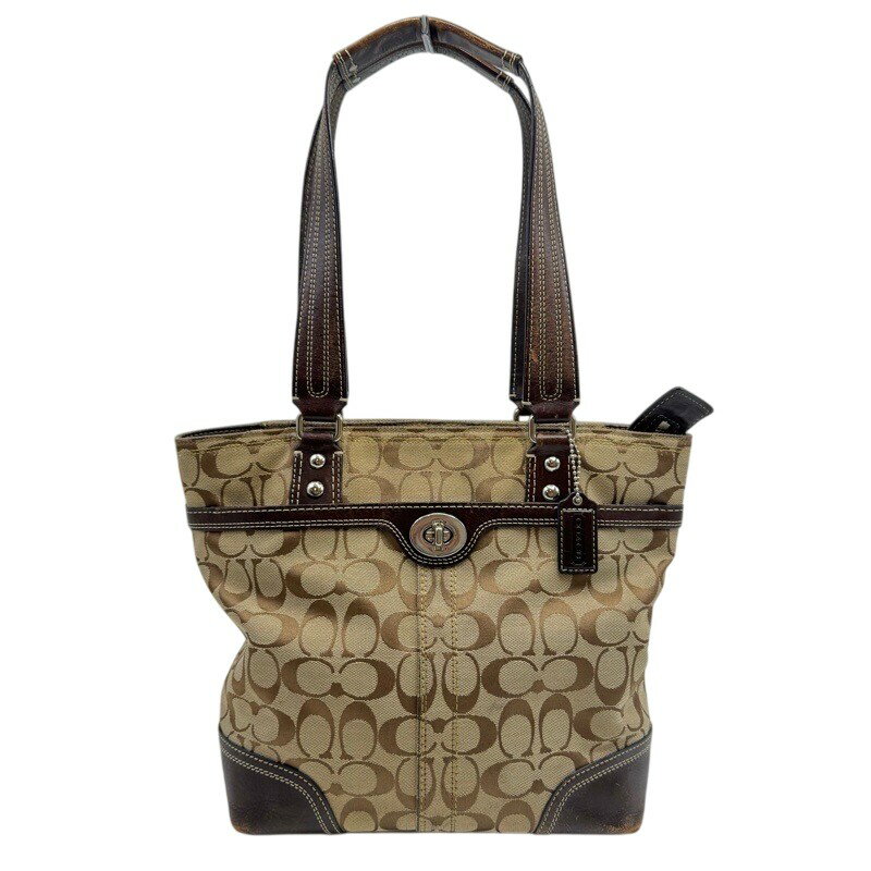 【ランクB】COACH コーチ 12729 シグネチャー トートバッグ セミショルダーバッグ ハンドバッグ キャンバス レザー ベージュ ブラウン シルバー金具 肩掛け 質屋 かんてい局 金沢久安店 A25-116