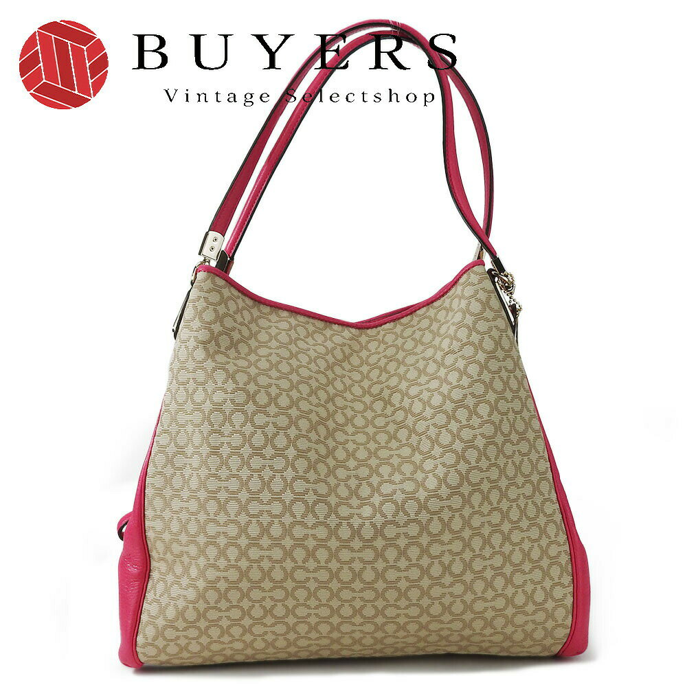 【中古】 コーチ トートバッグ 26282 キャンバス レザー ベージュ ピンク ベージュ ゴールド金具 肩掛け カジュアル レディース 女性 COACH