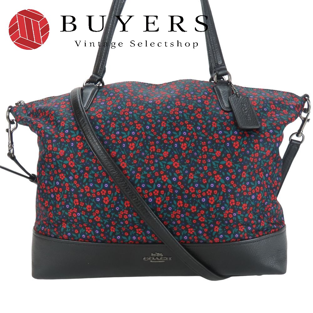 【中古】 コーチ トートバッグ F59433 サッチェル ランチ フローラル ナイロン レザー ブラック レッド グリーン 2WAY 斜め掛け ショルダー 小花柄 カジュアル レディース 女性 COACH