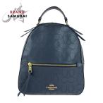 超美品 COACH コーチ シグネチャー ネイビー ゴールド金具 レザー リュック・デイパック レディース 504999