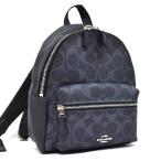 美品【COACH】コーチ COACH コーチ F28995 ミニチャーリー レザー ミニバックパック ネイビー グレー リュックサック デイパック【中古】FB3741