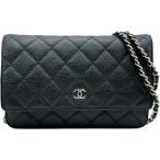 シャネル CHANEL マトラッセチェーンウォレット A33814 25番台 ブラック シルバー金具 キャビアスキン ショルダーバッグ レディース 中古
