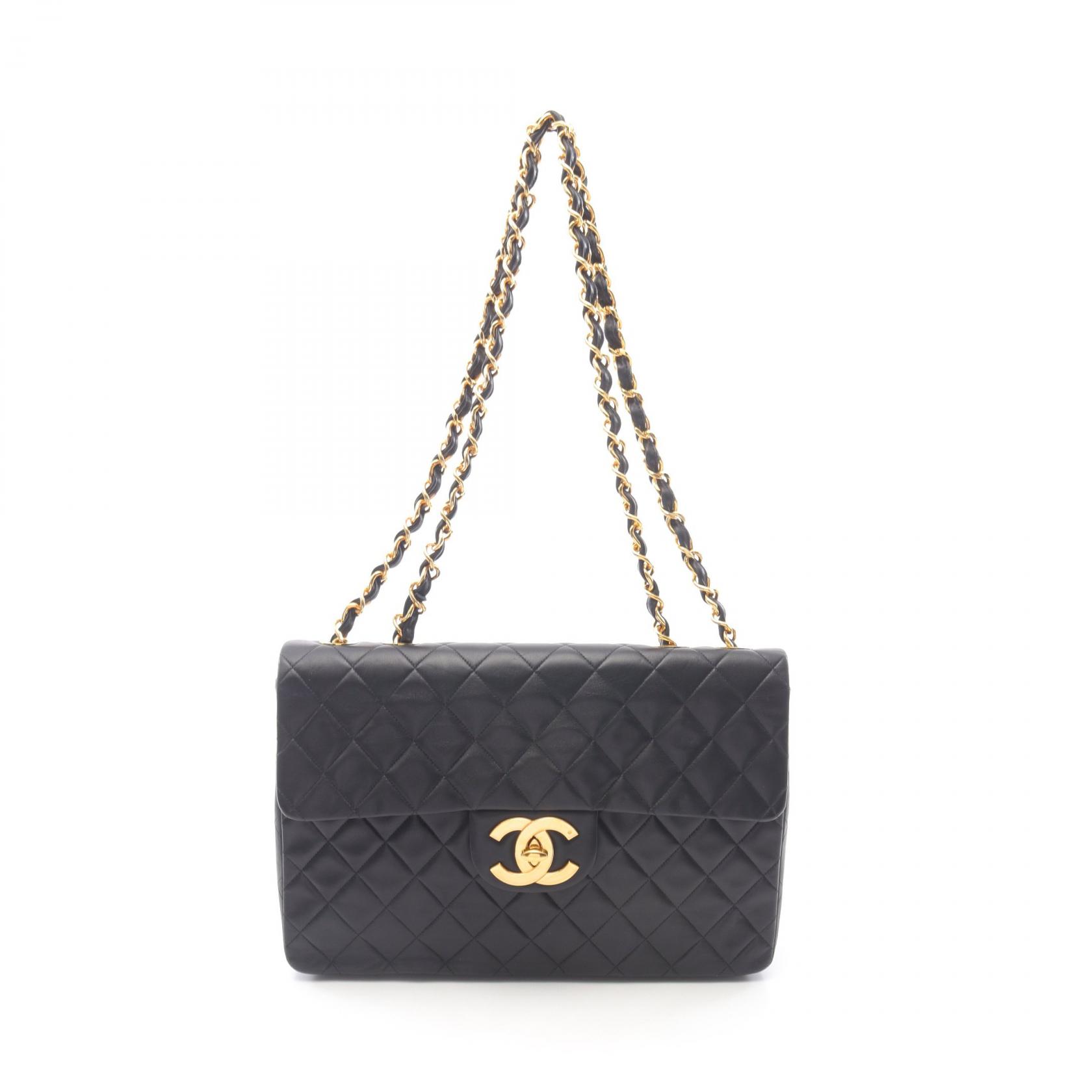 ≪5%OFF&まとめ買い対象≫シャネル CHANEL デカマトラッセ34 シングルフラップ ショルダーバッグ バッグ ラムスキン(羊革) レディース ブラック系 【中古】