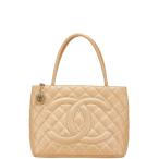 シャネル ココマーク マトラッセ 復刻トート ショルダーバッグ ベージュ キャビアスキン レディース CHANEL 【中古】