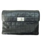 シャネル CHANEL 美品 チョコバー クラッチバッグ セカンドバッグ ラムスキン レザー 黒 ブラック 1206 ☆AA★ レディース