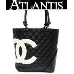 シャネル CHANEL カンボン トートバッグ ミディアム レザー 黒×白 8番台 【71740】