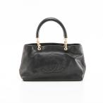 シャネル チョコバー ロゴ トートバッグ ハンドバッグ ブラック キャビアスキン レディース CHANEL 【中古】