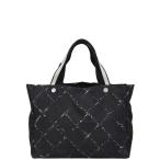 美品 CHANEL シャネル ニュートラベルライン トートMM トートバッグ ココマーク ナイロンジャガード レザー ブラック 9番台 A15991