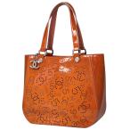 シャネル CHANEL ココマーク トートバッグ ショルダーバッグ パンチング No.5 エナメル トートバッグ パテントレザー オレンジ レディース 中古