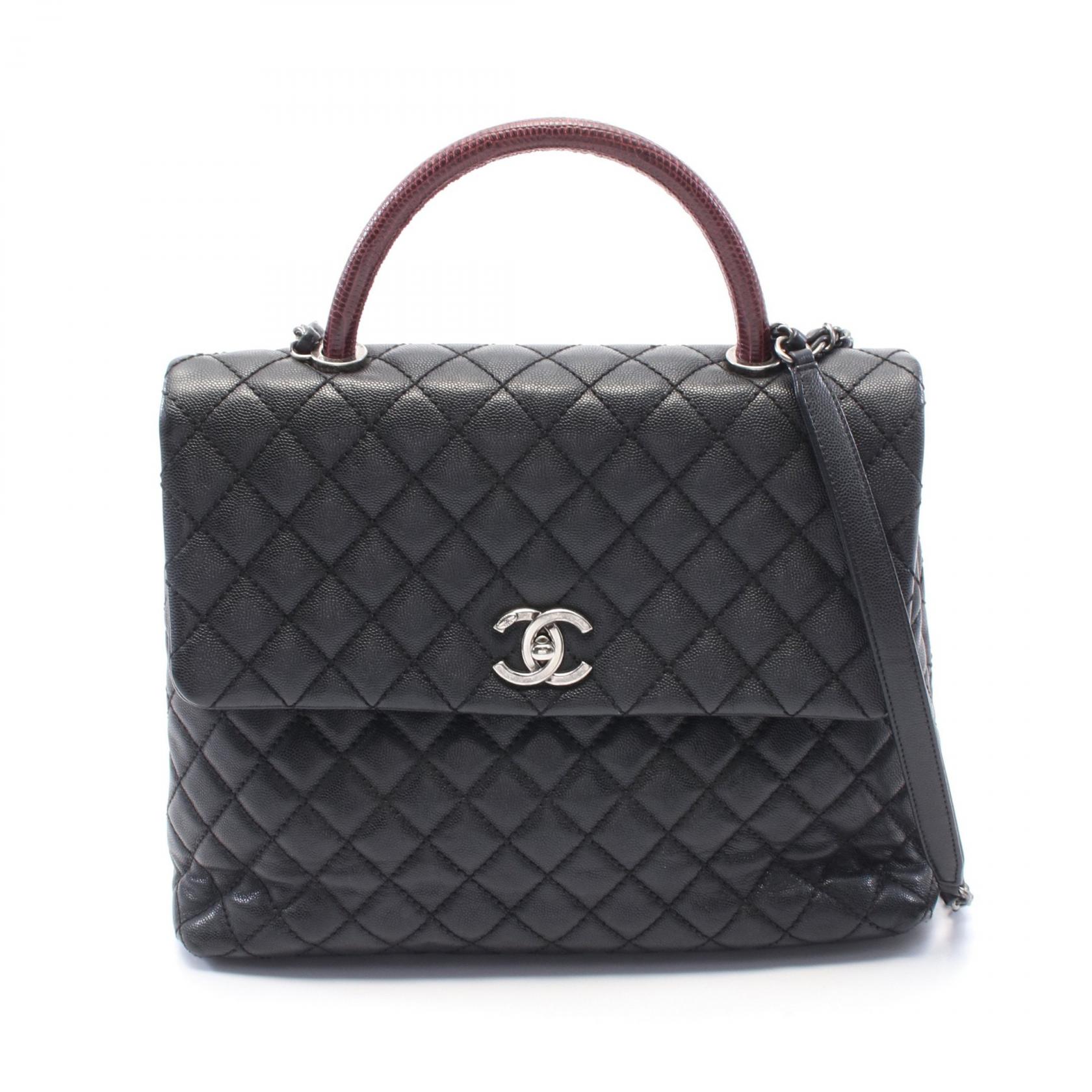 ≪5%OFF&まとめ買い対象≫シャネル CHANEL マトラッセ ココハンドル ハンドバッグ バッグ キャビアスキン(グレインドカーフ) エキゾチックレザー レディース ブラック系 / ボルドー系 A92992 【中古】