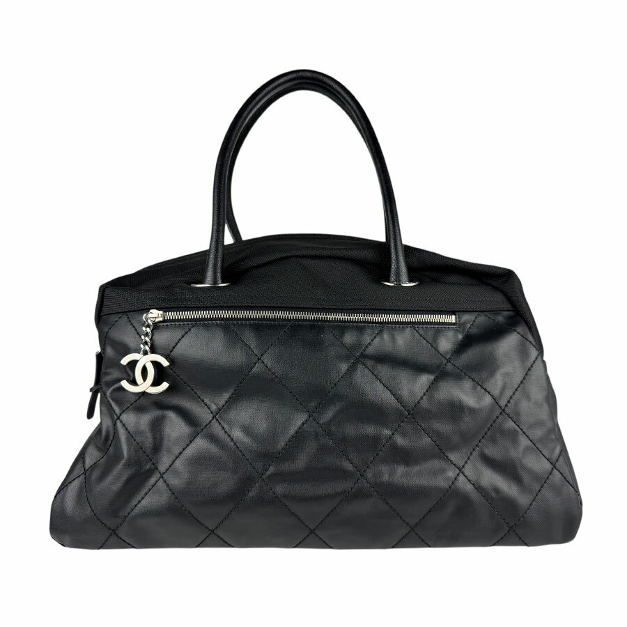 シャネル CHANEL ハンドバッグ ボストンバッグ パリビアリッツ レザー/キャンバス ブラック シルバー レディース 送料無料【中古】 z6711