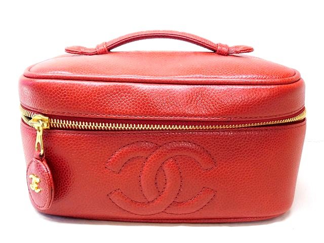 シャネル バニティ バッグ ■ 4番台 ヴィンテージ キャビアスキン レザー レッド ハンドバッグ CHANEL □7H