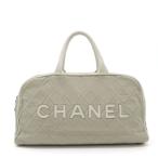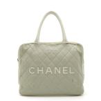 CHANEL シャネル スポーツライン マトラッセ ロゴ ハンドバッグ ミニボストンバッグ キャンバス レザー グレー ホワイト