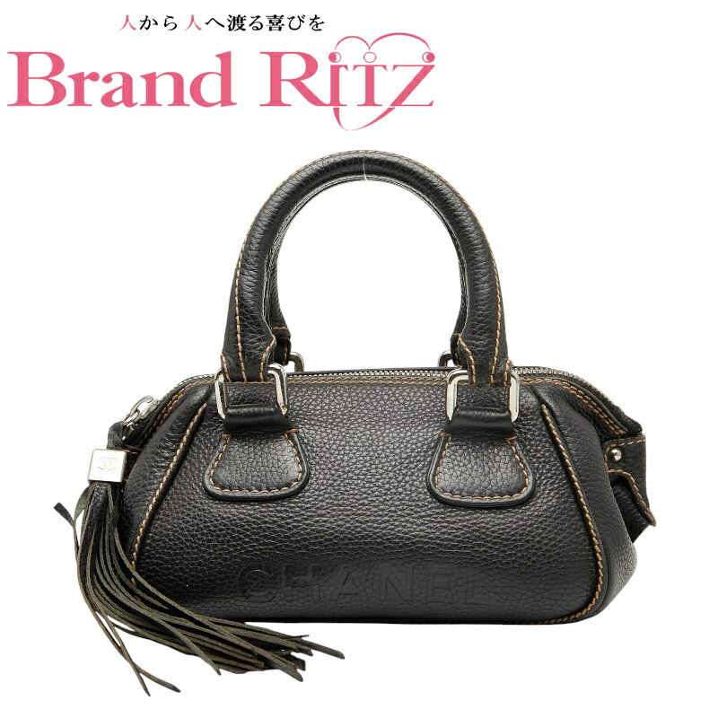 【絶対お得!!クーポンあり&10%OFF】中古 シャネル ロゴ フリンジ ミニボストンバッグ ハンドバッグ ブラック キャビアスキン レディース ABランク CHANEL あす楽【送料無料】【西神店】