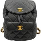 シャネル マトラッセ バックパック ラムスキン リュックサック ココマーク フラップ式 ゴールド金具 ブラック 黒色 レディース【中古】