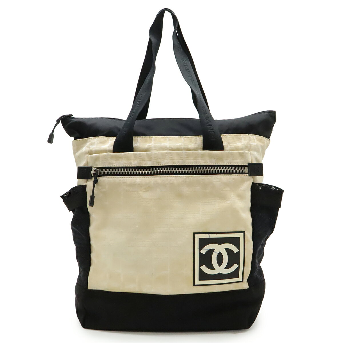 CHANEL シャネル ニュートラベルライン スポーツライン ココマーク トートバッグ 2WAY リュックサック ナイロンジャガード アイボリー 白 A22061 【中古】