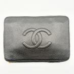 シャネル バッグ キャビアスキン ココマーク ポーチ クラッチバッグ セカンドバッグ ブラック ゴールド金具 中古