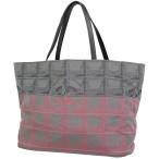 シャネル CHANEL ニュートラベルライン トートMM ココマーク ハンドバッグ ナイロンジャガード グレー ピンク A47147 レディース 中古