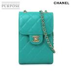 未使用 展示品 シャネル CHANEL マトラッセ フォン ホルダー チェーン ショルダー バッグ レザー グリーン ゴールド 金具 90320952