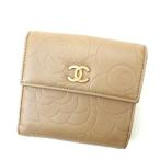 【限定値下げ★30%OFF】シャネル Wホック財布 レディース カメリア ベージュ 中古