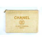 CHANEL シャネル ドーヴィル クラッチバッグ ストロー イエロー ユニセックス ロゴ エンブロイダリー ベージュ A80117【中古】