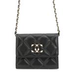 (新品・未使用品)シャネル CHANEL マトラッセ ミニ チェーン ウォレット カードケース 財布 ショルダーバッグ ラムレザー ブラック ゴールド金具 AP1895 箱付