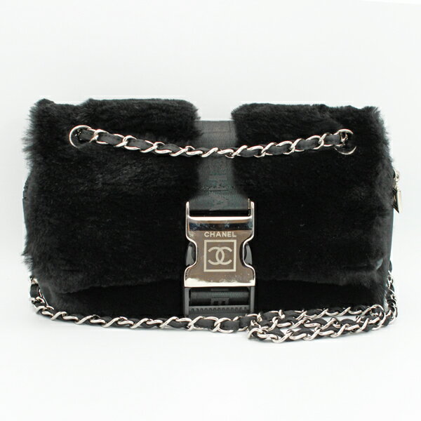 CHANEL シャネル バッグ スポーツラインファーバッグ ラビットファー/ナイロン ブラック シルバー金具【送料無料】【中古】【D5579】