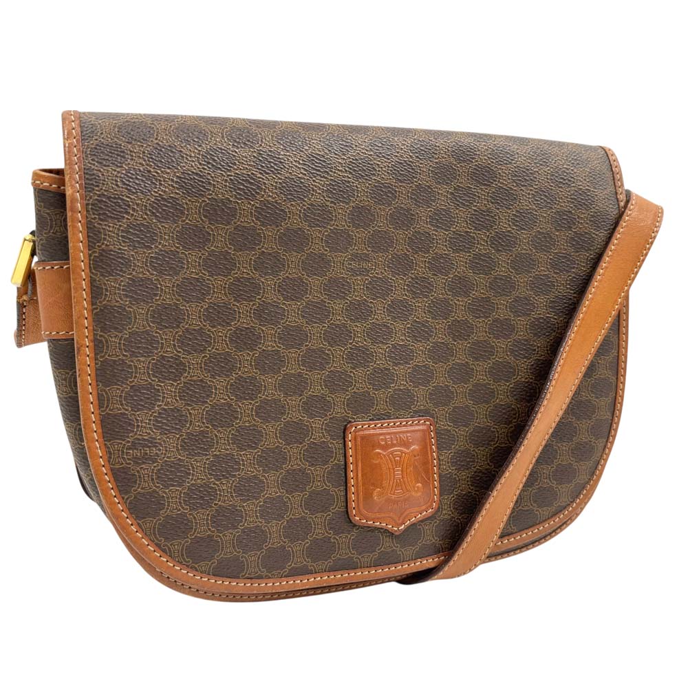 CELINE セリーヌ マカダム 斜め掛け カバン バッグ ショルダー ショルダーバッグ PVC/レザー レディース ブラウン 【中古】