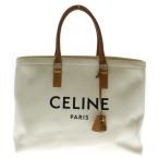 CELINE セリーヌ ロゴ トートバッグ カバン ホリゾンタル カバ トートバッグ キャンバス/レザー レディース ナチュラル/タン ホワイト 【中古】