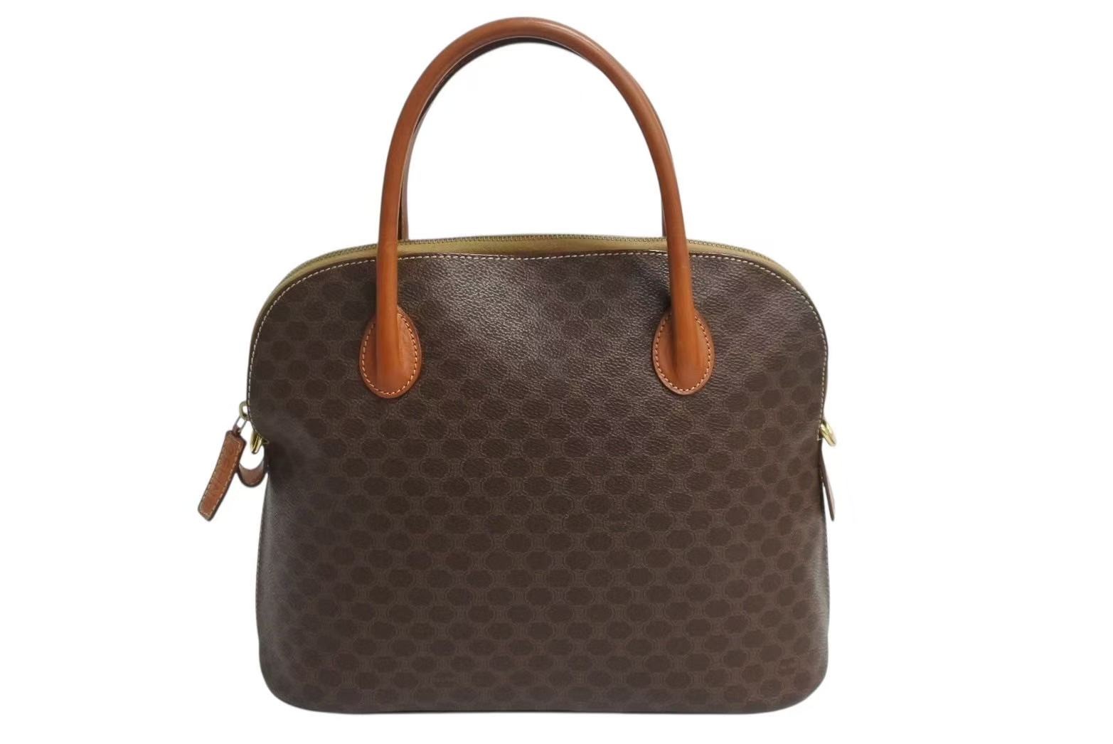 CELINE セリーヌ マカダム柄 ハンドバッグ ロゴ ゴールド金具 PVC レザー ブラウン 茶色 手持ち 鞄 美品 中古 4b002261