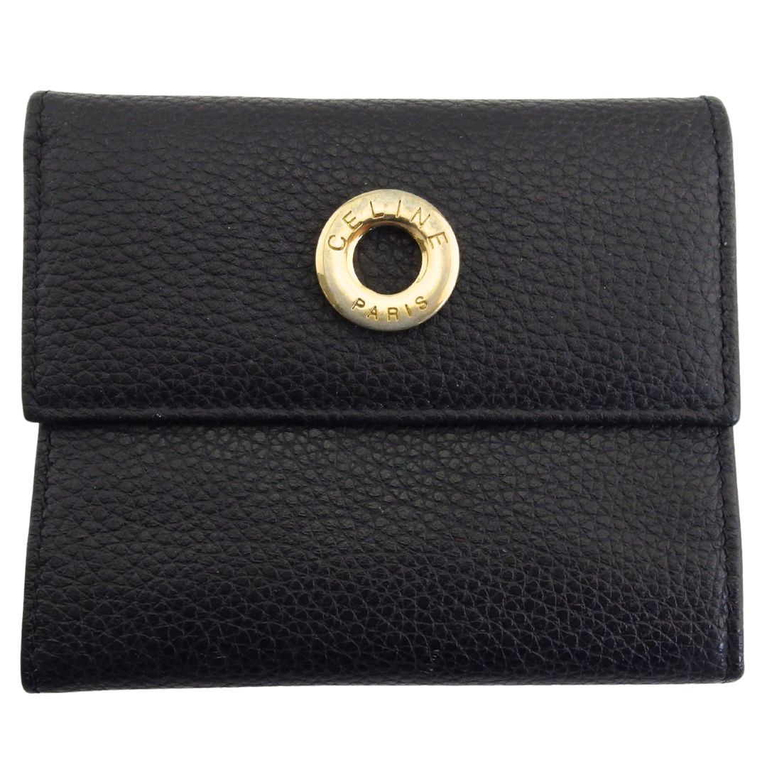 【ブラックフライデー30%OFFクーポン】セリーヌ CELINE 三つ折り財布 サークルロゴプレート ブラック レディース 中古 ブランド ハイブランド ヴィンテージ