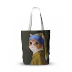フェルメールパロディトートバッグ 青いターバンをした猫 両面プリント 可愛い おしゃれ キャンバス