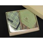 ■美品■ BURBERRY バーバリー ハンドタオル ハンカチーフ ポケットチーフ 2点セット コットン100% グリーン系×ブラウン系 DJ3751