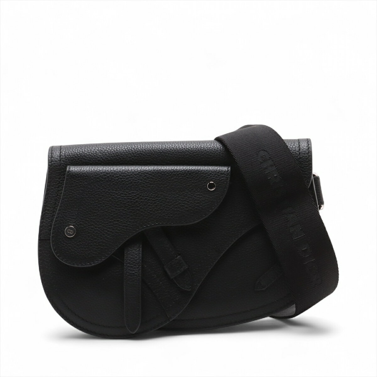 【中古】ディオールオム サドル レザー ショルダーバッグ ブラック