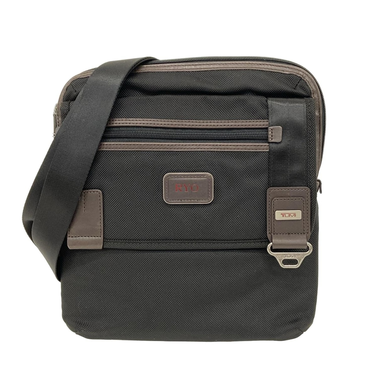 【中古】TUMI(トゥミ) ショルダーバッグ ネーム刻印 黒×ダークブラウン レザー