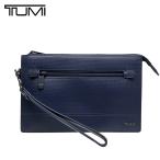 TUMI クラッチバッグ トゥミ セカンドバッグ ポーチ 本革 エンボス レザー 紺 ネイビー