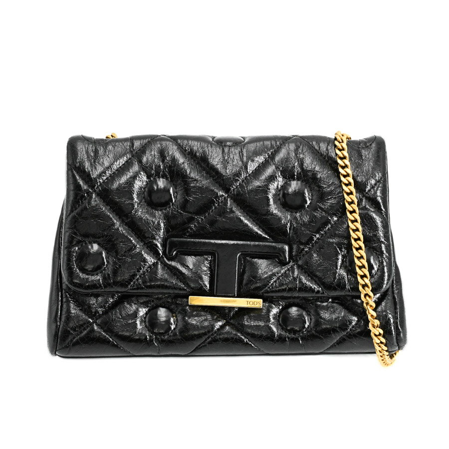 【中古】A品 トッズ Tタイムレスチェーンショルダーバッグ ショルダーバッグ ブラック レディース