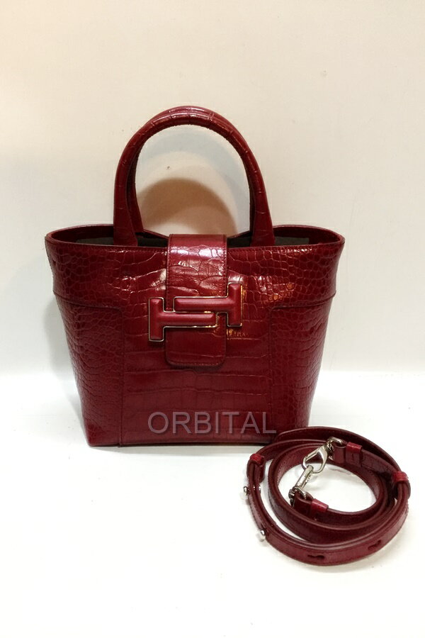 【中古】代官山)TOD'S トッズ ダブルT トップハンドルバッグ 2WAY ショルダーハンドバッグ 型押し レッド