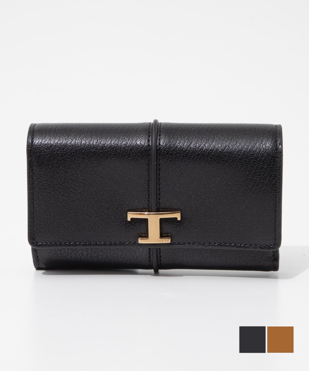 トッズ TOD'S XAWTSKB3300 TLS 三つ折り財布 T タイムレス レディース ミニ財布 レザー 小銭入れ ウォレット カジュアル シンプル ギフト プレゼント さいふ T TIMELESS ブラック×グレージュ