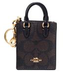 コーチ キーホルダー COACH コーティングキャンバス レザー シグネチャー ミニ ノースサウス トート バッグ ポーチ バッグチャーム ブラウン×ブラック CU281