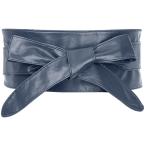 uxcell サッシュベルト フェイクレザー 幅広 太ベルト 蝶ネクタイ ウエスト リボン レディース ネイビーブルー 220cm