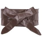 uxcell サッシュベルト フェイクレザー 幅広 太ベルト 蝶ネクタイ ウエスト リボン レディース コーヒー 220cm